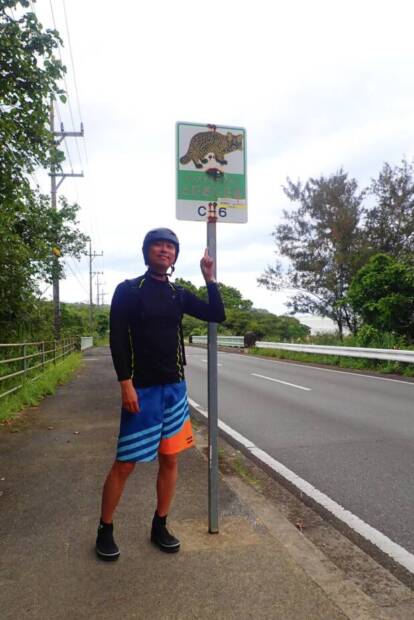 ゲータの滝トレッキングルート入り口にはリアルなイリオモテヤマネコ飛び出し注意看板が👀