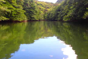 上流に行けば無風で水面も鏡のようです。
