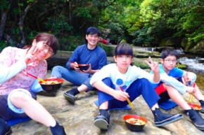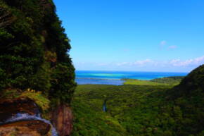 滝の上から海を眺めて 八重山そば。