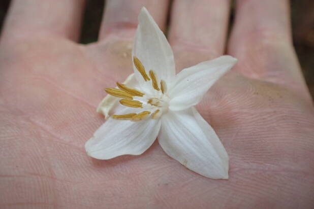 エゴノキの花がたくさん落ちていました!!いい香りがしますよ!!!