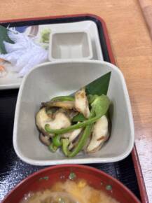 ピーマンとタカセ貝のバター醬油焼きです。
