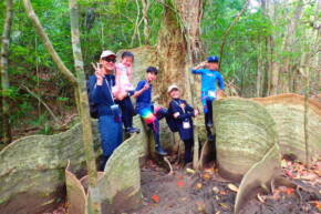 の前にサキシマスオウノキと記念撮影!