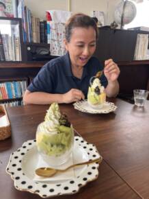 デザートに抹茶パフェ(‘ω’)おいしいのです。