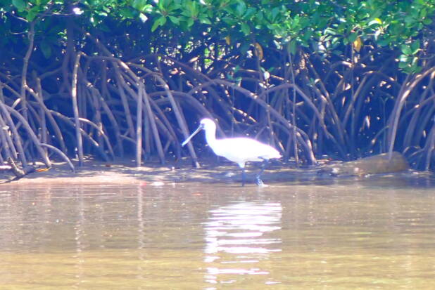 西田川に入ってすぐのポイントでクロツラヘラサギに出会えました!!!