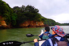 カヌーで通り抜けます。おもしろ~いい。