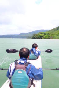 さてきれいな海を漕いで帰りましょう。たくさんウミガメが見られました。